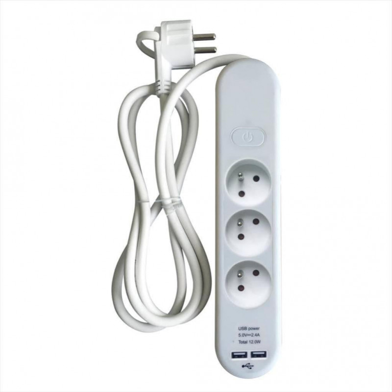 3 prises terres plates de 16 A + 2 prises USB.