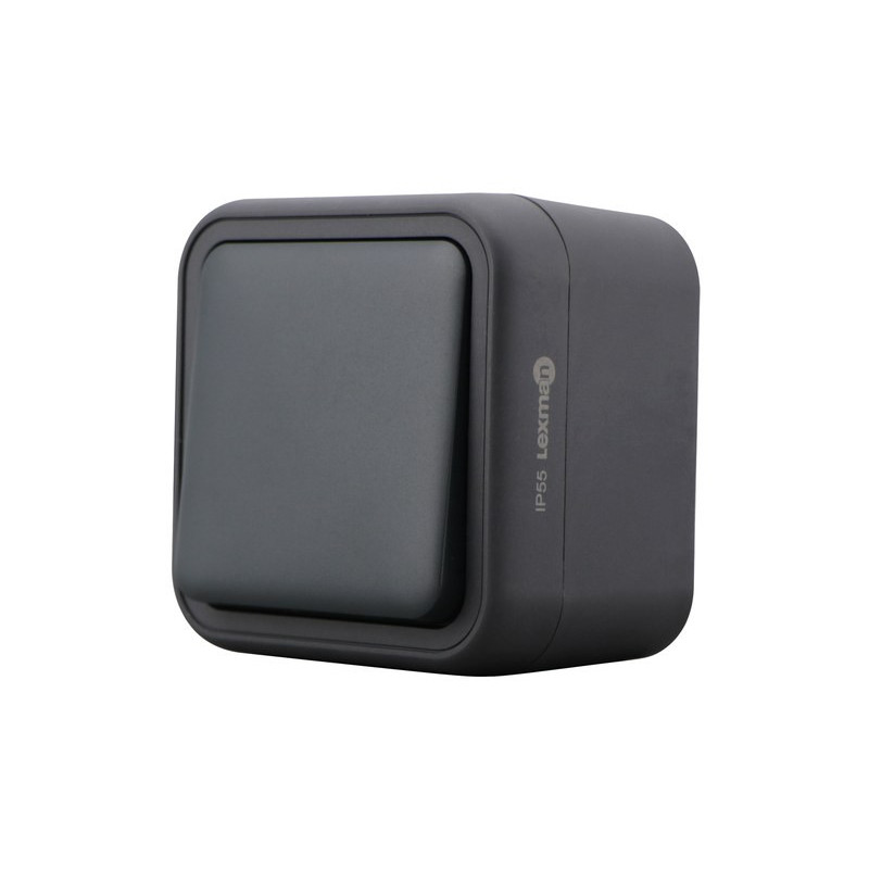 H 75 x L 64 x P 50 mm. En plastique. IP 55. Coloris gris fusain.