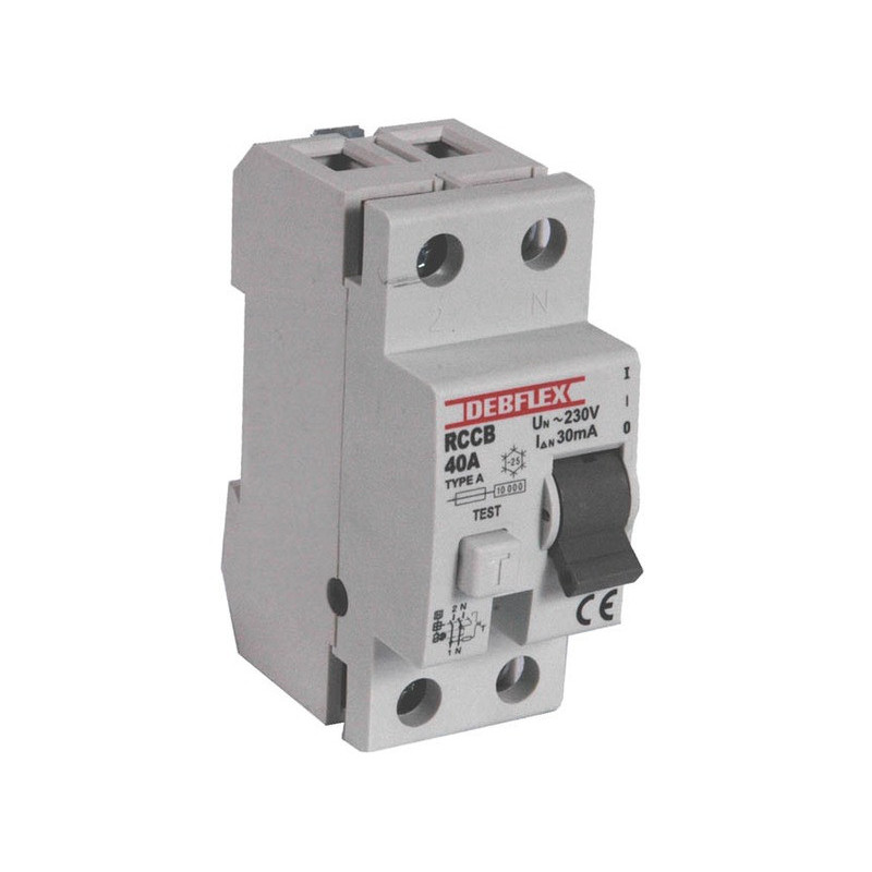 H 92 x L 40 x P 85 mm. Type A. Sensibilité 40 mA. protection et sécurité.