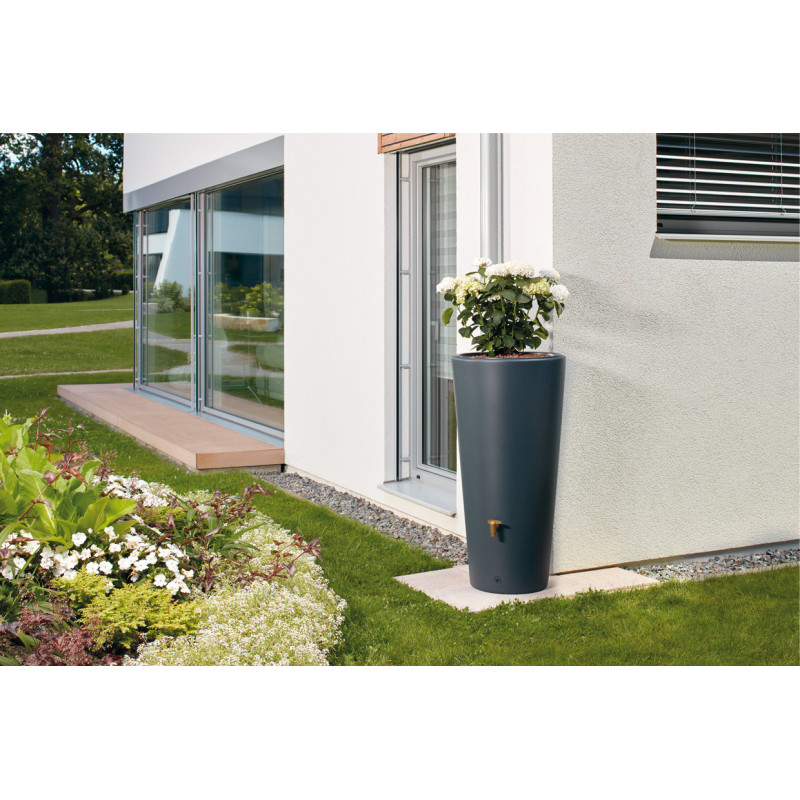 utilisation de l'eau de pluie et décoration grâce à son bac à plantes amovible.