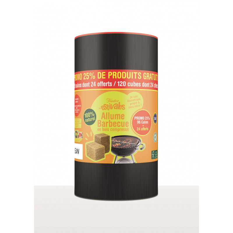 Allume feu solide en bois. 120 cubes dont 24 offerts.