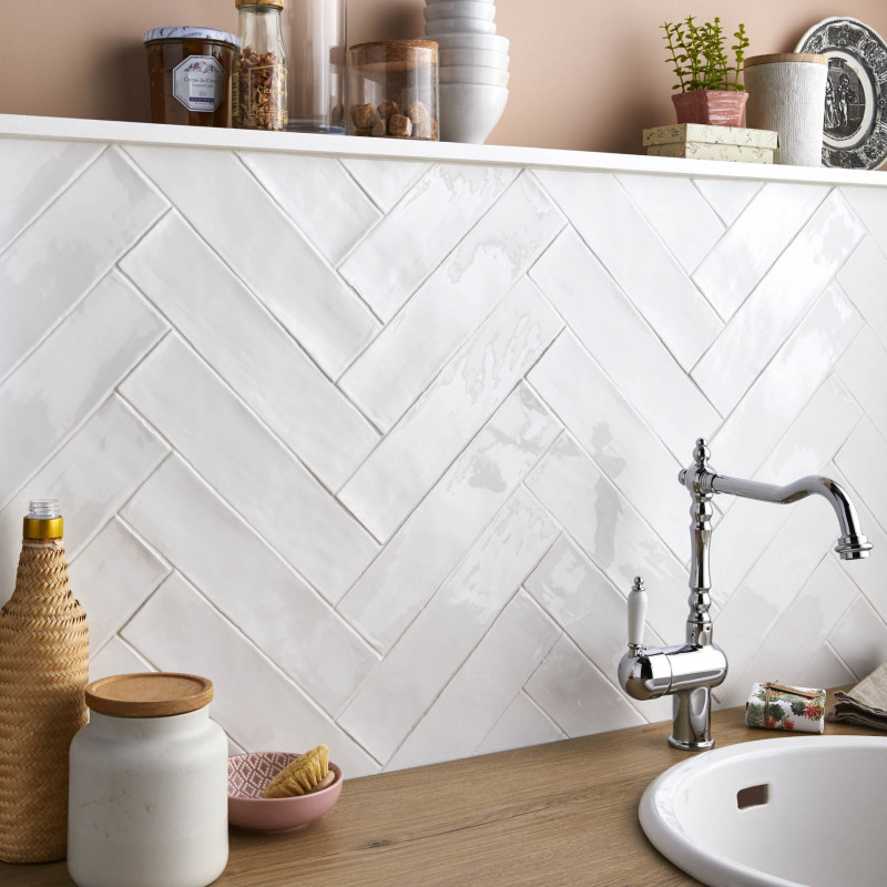 Pâte blanche.Ep.8mm. Finition émaillée blanc brillant. Pour pose au mur en intérieur. Livré en carton d' 1m²