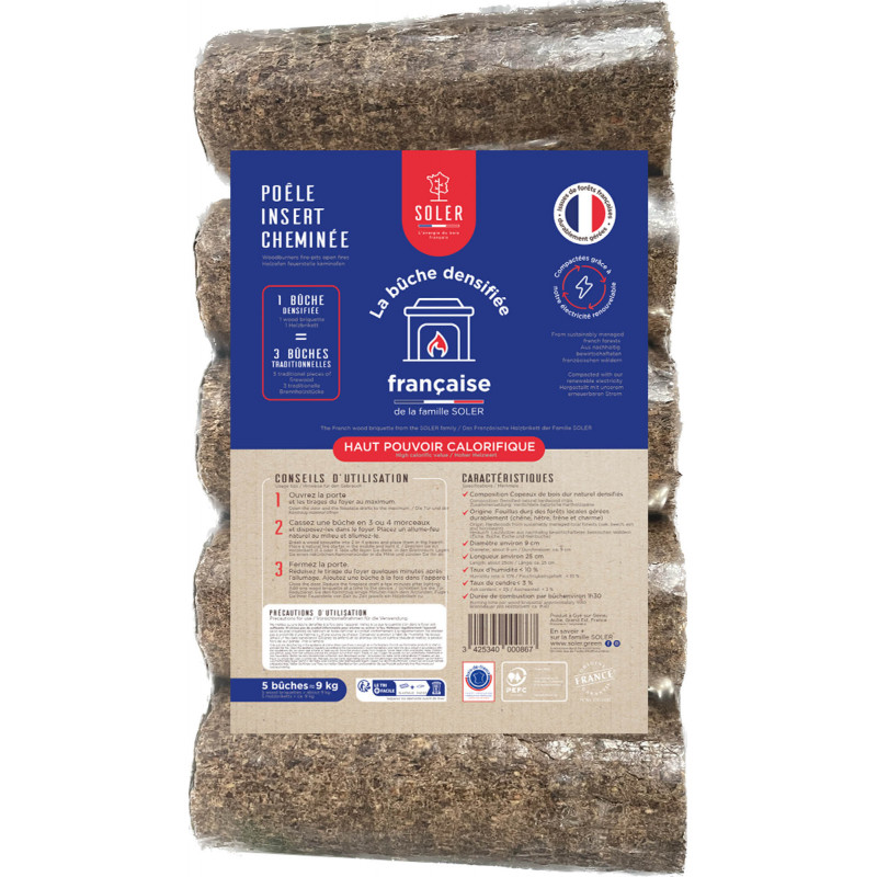 LOT X5 BÛCHES DE BOIS DENSIFIÉ SOLER 9KG