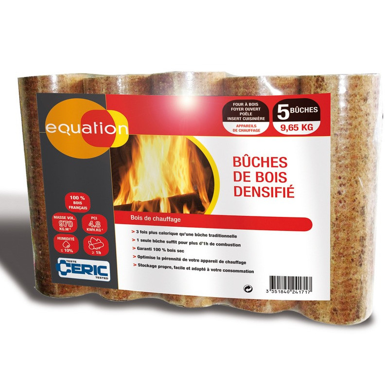 Apport de chaleur immédiat. 1 bûche équivaut à 3-4 bûches traditionnelles. Combustion sans poussières ni résidus.