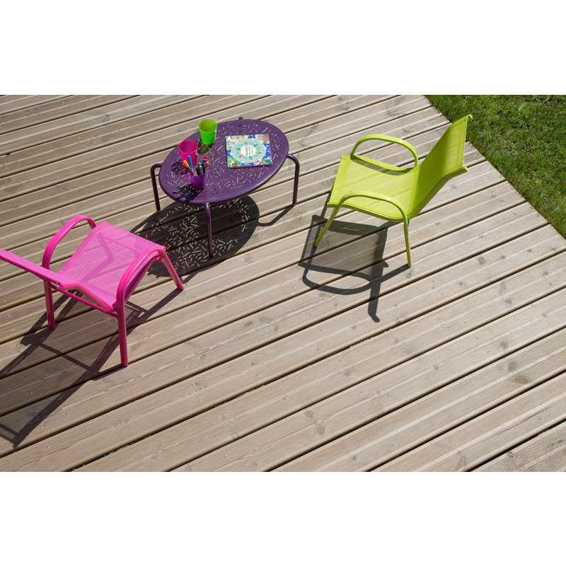 Dimensions : L.240 x l.14.5 cm x Ep.27 mm Aspect de surface : Lisse / rainuré (réversible) Pose à visser En pin massif coloris vert