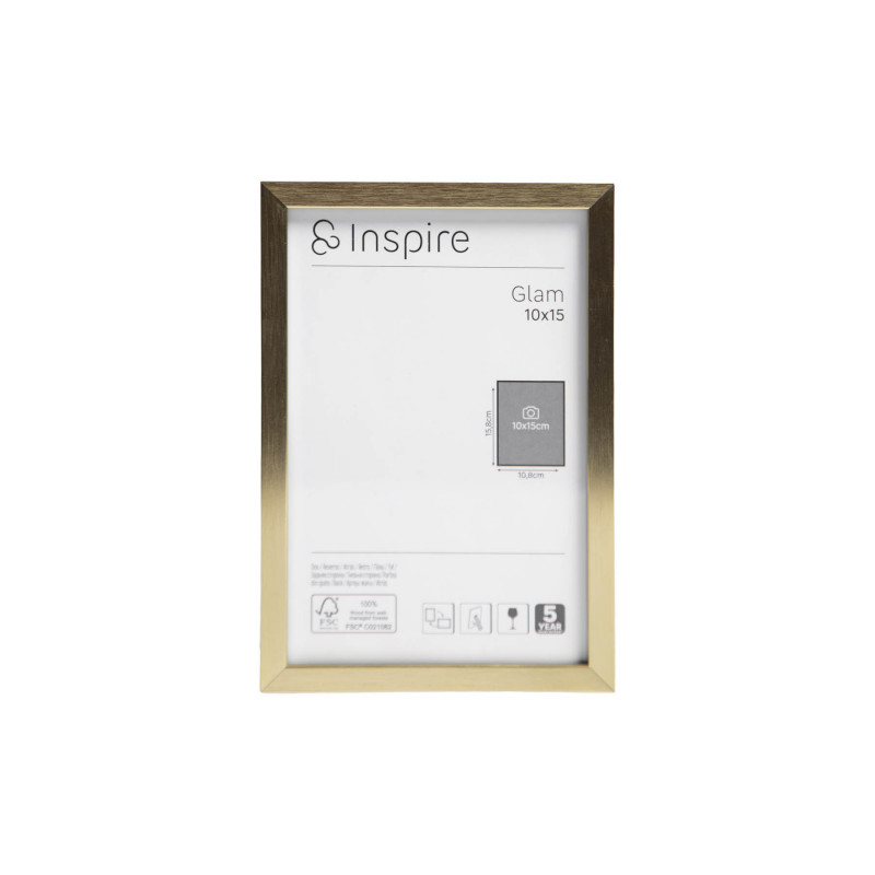 Baguette en métal doré. Fond en contreplaqué. A postionner en vertical ou horizontal grâce à l'empatement fourni. Différentes dimensions disponibles.