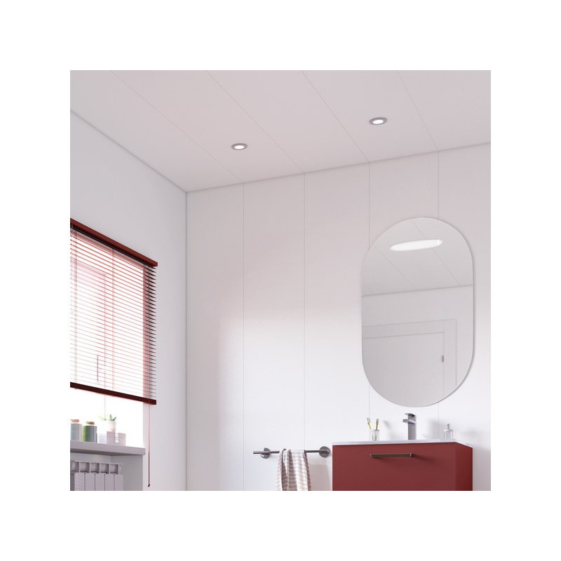 L 120 x l 16.7 x Ep 0.6 cm. En PVC aspect sturcturé. A coller. Classe formaldéhyde E0. Coloris blanc lisse Livré en botte de 3.60 m²