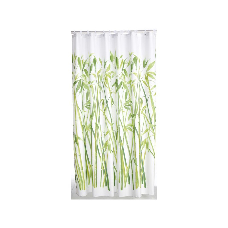 Rideau de douche à motif Bali vert. En tissu. 12 oeillets. 100% polyester. Lavable en machine à 30°C.