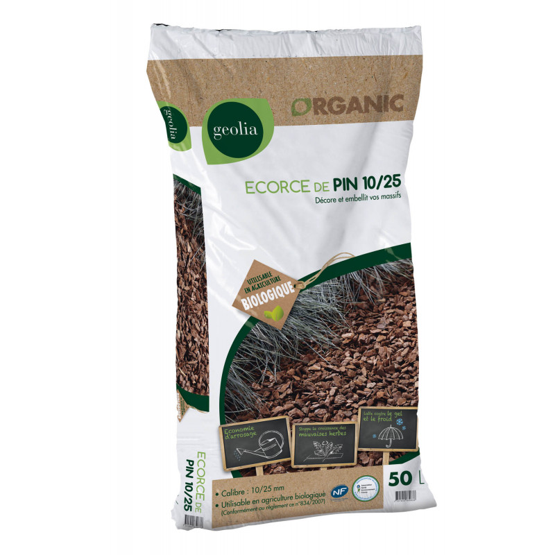 Decore et embellit vos jardins. Ralentit les besoins en eau de vos massifs. Utilisable en agriculture biologique. Calibre 10/25.