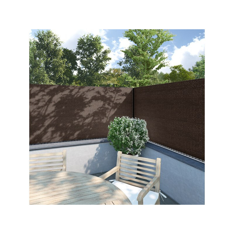 H 1 x L 3 m. Epaisseur 1 mm. En polyéthylène haute densité. Occultation 99%. 230 g/m². Traitement anti-UV. Coloris marron.