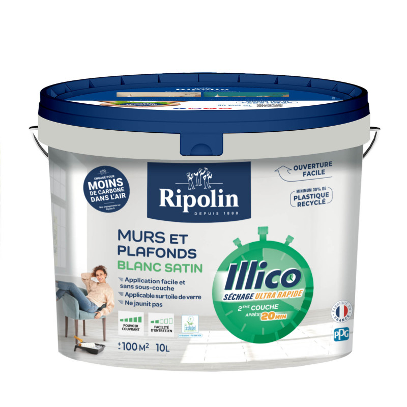 Peinture couvrante. Séchage ultra rapide. Recouvrable en - de 20mn Rendement +/- 100m² Coloris blanc aspect satin.>