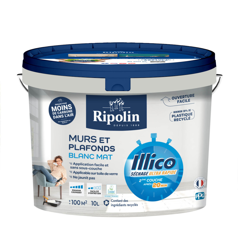 Peinture couvrante. Séchage ultra rapide. Recouvrable en - de 20mn Rendement +/- 100m² Coloris blanc aspect mat.>