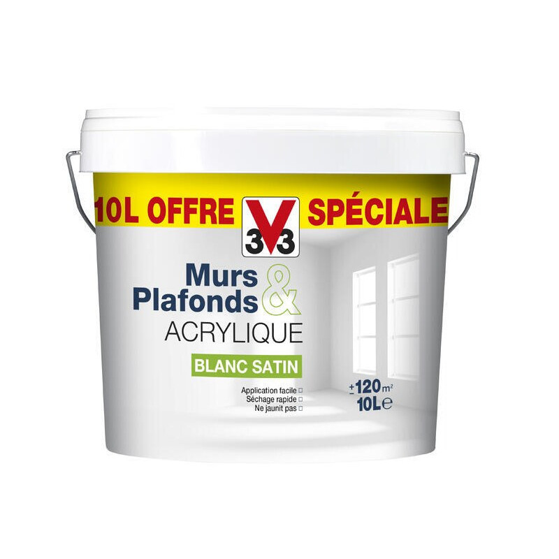 Acrylique blanc. Aspect satin. Application facile. Ne jaunit pas. Rendement +/- 120m².