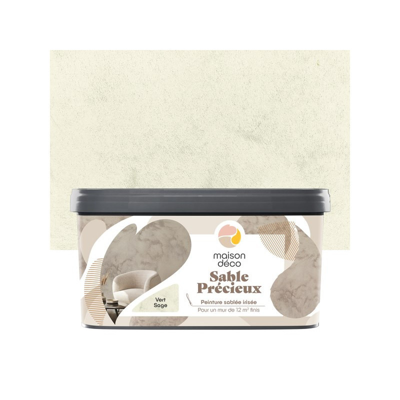 Peinture sablée irisée. Texture fluide facile à appliquer. Application au rouleau ou au spalter. Prête à l'emploi. Aspect mat. Divers coloris au choix.