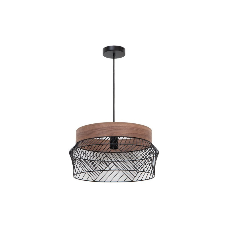Diamètre : 38cm. Hauteur : 126 cm. Culot E27. IP 20.Maxi 60W. Metal noir et socle bois. Ampoule non fournie