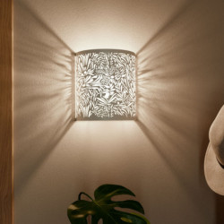 Applique murale en métal blanc mat. 1 lumière culot E27 max 60W. (Vendue sans ampoule). H. 23 x l. 23 x P. 10 cm.