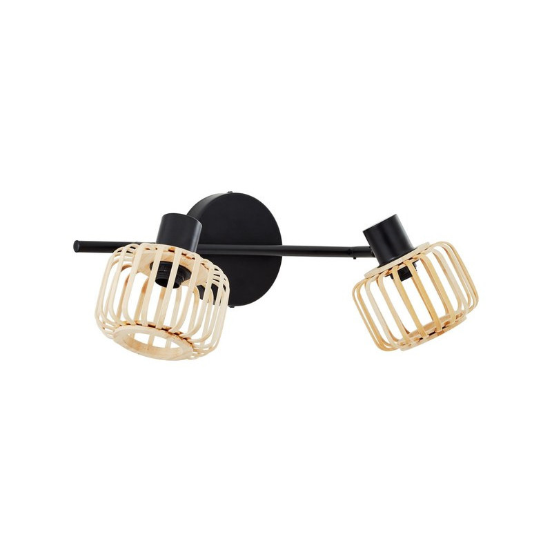 Métal noir/naturel, E14. Classe 2, IP20. 2 spots orientables. Vendue sans ampoule.