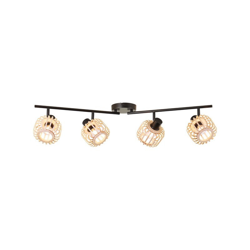 Métal noir/naturel, E14. Classe 2, IP20. 4 spots orientables. Vendue sans ampoule.