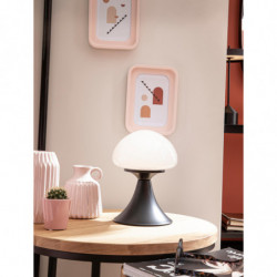Abat-jour cristal en dôme blanc. Pied métal noir.
