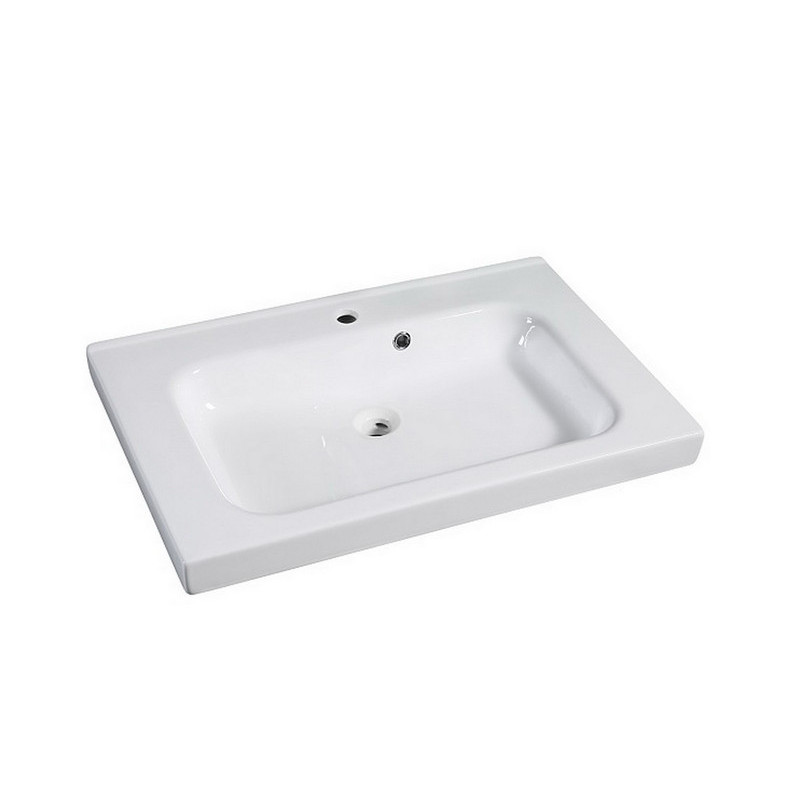 L 76 x l 49 x Ep 14 cm. En céramique. A encastrer.Pour la série de meuble REMIX 75 Coloris blanc finition brillante.