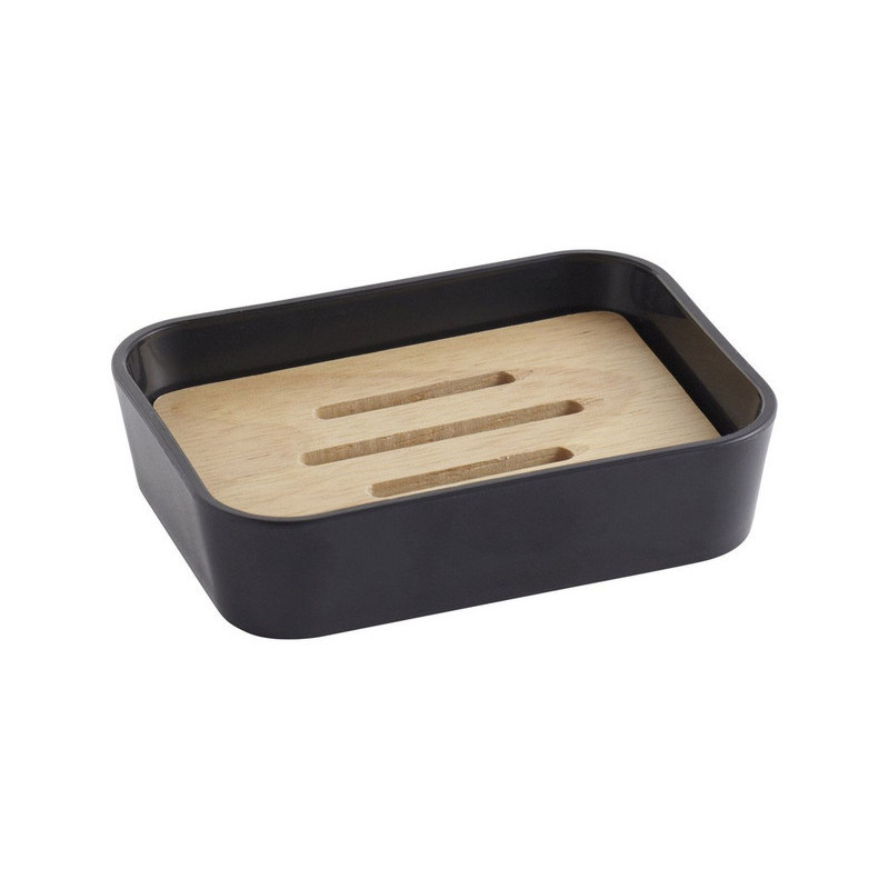 H 2.8 x L 11.8 x l 8.7 cm. En bois et plastique. Coloris noir et bois clair.