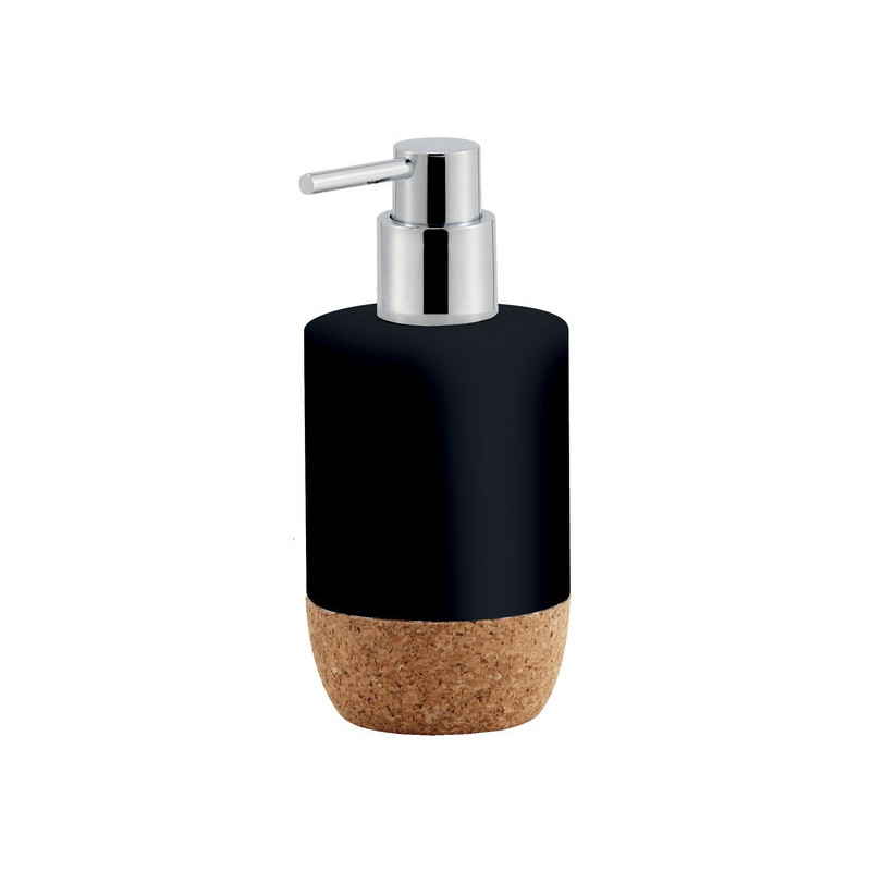 Distributeur de savon rond Ø 7.5 cm. H. 21 cm. A poser. En céramique. Disponible en noir et en blanc.