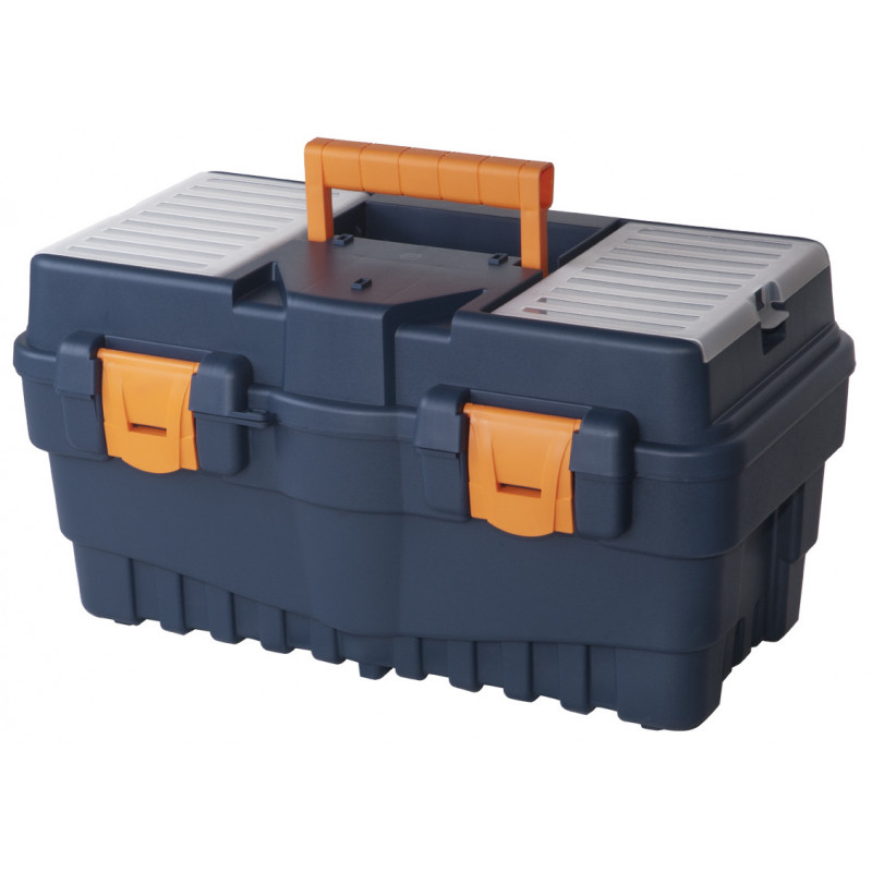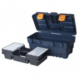 Dim. L. 46.2 x l. 25.6 x H. 24.2 cm. Avec un plateau double niveau. Rangement d’outils et de consommables.