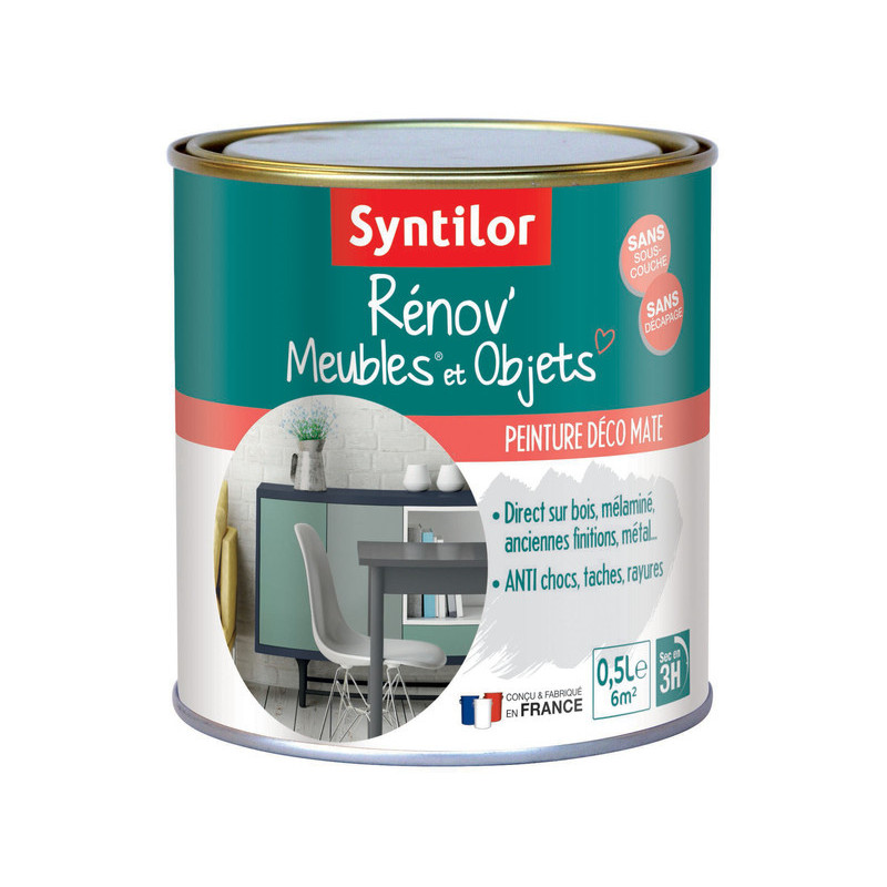 Séchage au toucher 1 h. Séchage entr deux couches 3 h. Séchage complet 12 h. Rendement 6 m²/pot. Coloris finition mate.