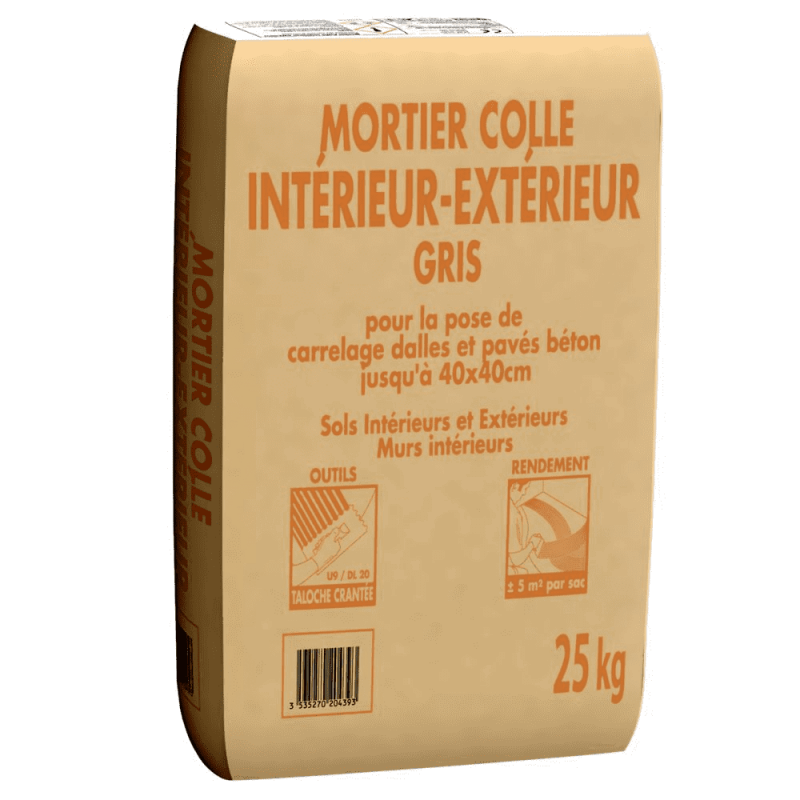 Mortier-colle pour la pose de carrelage dalles et pavés béton jusqu'à 40 x 40 cm. Il s'utilise en sols intérieurs et extérieurs et murs intérieurs.