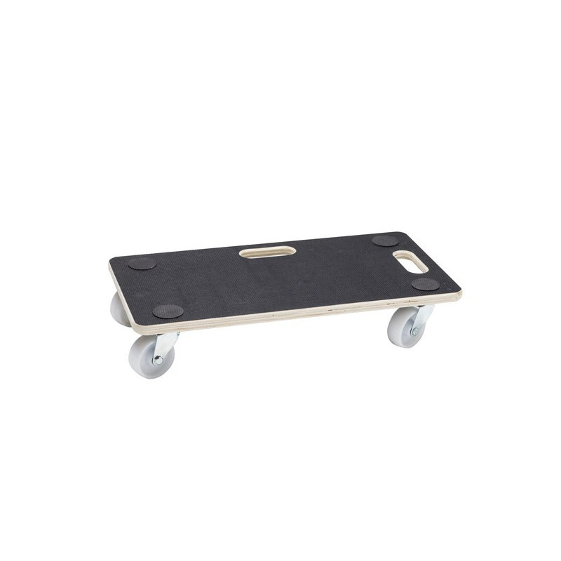 En bois et polypropylène. 4 roues pivotantes. Plateau antidérapant. Coloris noir et bois naturel.