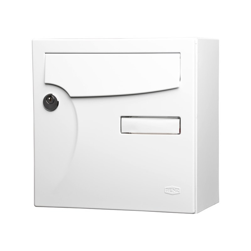 L 28.5 x H 28.5 x P 15 cm. Ouverture l 23.5 x H 3 cm. En acier. Murale ou sur pied à sceller. Serrure normalisée. 2 clés fournies.