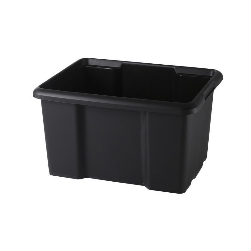 H 29.5 x L 39 x l 55.5 cm. Charge maximale 25 Kg. Superposable. Coloris noir.