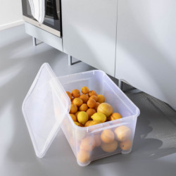 H 28.5 x L 55.5 x P 39 cm. En Polypropylène. Rangement de denrées alimentaires possible. Coloris transparent.