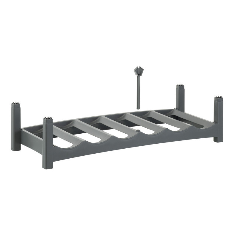 L 60 x l 22 x H 14 cm. En polypropylène. coloris anthracite Empilable. Stockage de 6 bouteilles/rack.