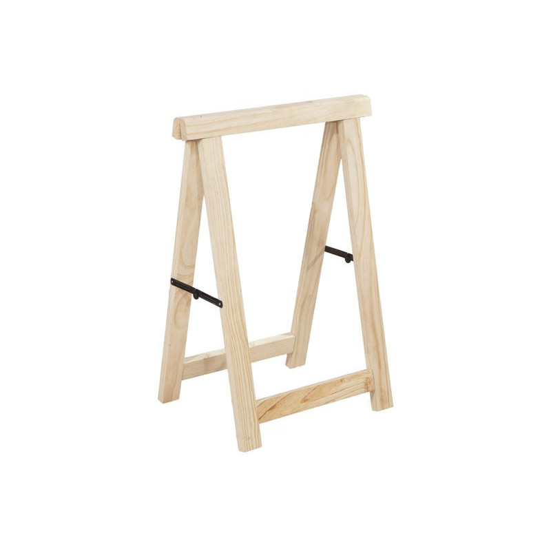 H 75 x L 53 cm. Charge utile 150 kg par tréteaux. En pin et acier. Finition brute.