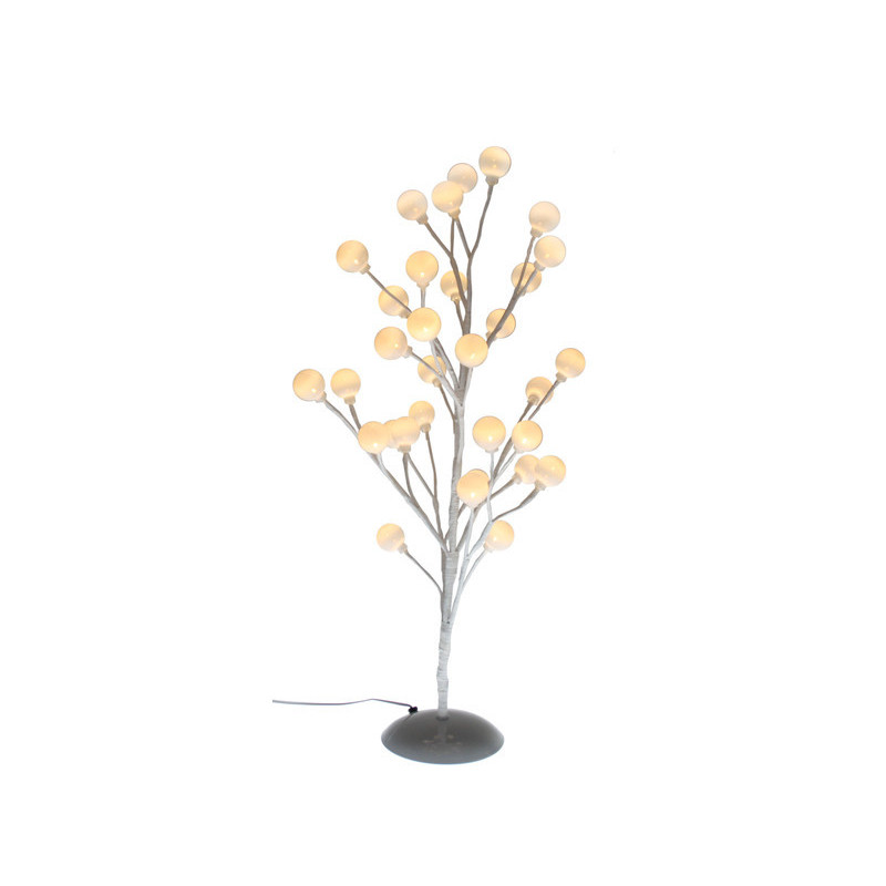 H.60cm. Boules blanches opaques. 32 LED Blanc chaud. Illumination fixe. A utiliser à l'intérieur.